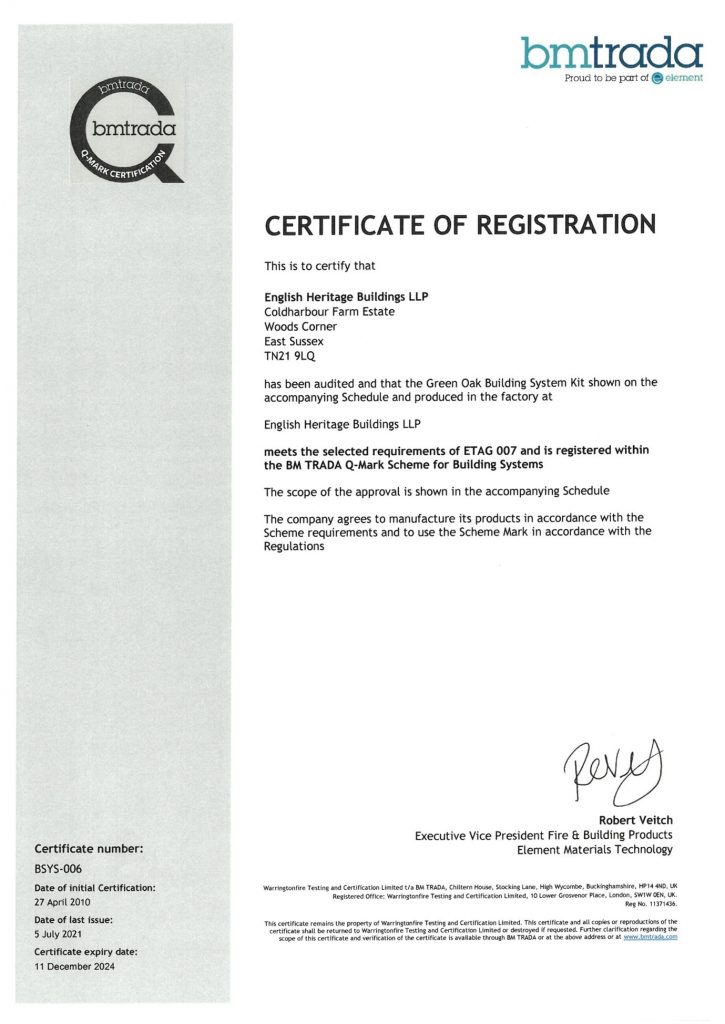 We are the only oak frame manufacturer to offer a BM Trada Q-mark or equivalent, the Q-mark covers not only process but quality, we are audited to make sure we maintain all the 22 recognised standards that are related to oak framing and covered in our control document.