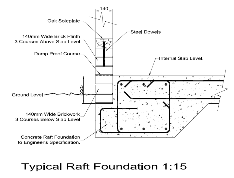 Raft foundations must be designed by a structural engineer, based on ground conditions and the size of the building.
